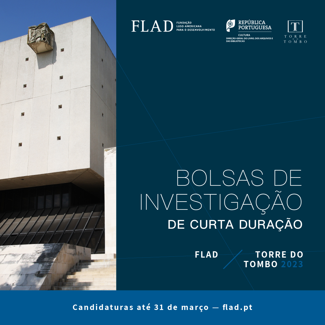 A Direção-Geral do Livro, Arquivos e Bibliotecas /Arquivo Nacional da Torre do Tombo e a Fundação Luso-Americana para o Desenvolvimento, no âmbito do protocolo estabelecido, anunciam a abertura do prazo para apresentação de candidaturas a bolsas de investigação de curta duração para 2023, a decorrer de 15 de janeiro a 31 de março.